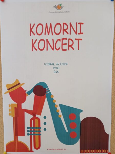 OGŠ Metković , priredila je Koncert komorne glazbe 26.03.2024.god. u Gradskom kulturnom središtu Metković, s početkom u 19 sati. “Koncert