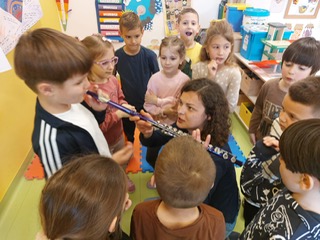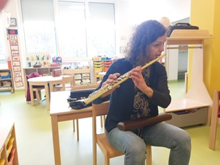 Profesorica Valentina Martić posjetila je predškolce našeg vrtića Vedri dani. Veseli predšklci obradovali su se zvuku flaute. Profesorica je sa sobom donijela srebrnu i ljubičastu flautu, neobično i zanimljivo. Čaroban zvuk flaute pretvorio je mališane u uho. Slušali su pjesmice i priče o flauti , a na samom kraju ovog posjeta puhali su u flautu imitirajući Indijance.