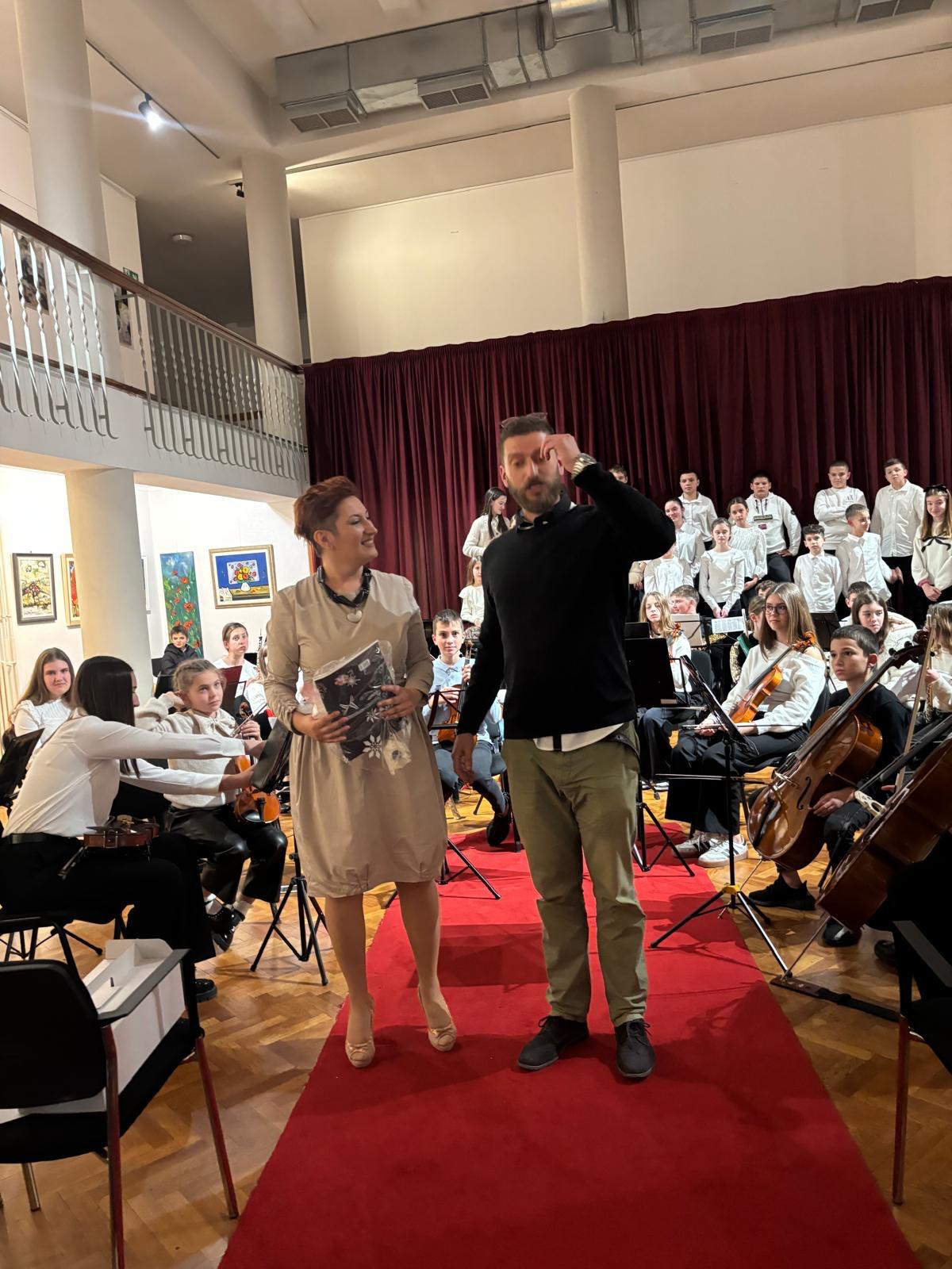 Prof. Davor Jelavić Šako obratio se publici kako bi se zahvalio metkovskoj glazbenoj školi i ravnateljici na gostoprimstvu te im je, na oduševljenje svih, kao poklon podijelio tradicionalni omiški soparnik.